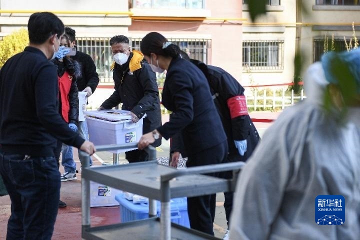 “大家辛苦了,快來拿飯吧,趁熱吃?!薄俺缘暮鹊亩加?,酸奶和牛奶每人一盒?!痹谖鲗幰咔榉揽匾痪€的核酸檢測(cè)點(diǎn),一位皮膚黝黑的藏族漢子和同事抬著箱子,忙前忙后為工作人員和志愿者遞上盒飯。看到大伙都吃上熱飯,臉上露出了爽朗的笑容。
