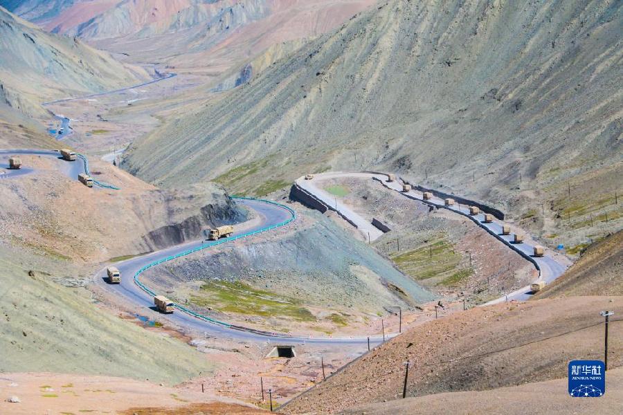 聯(lián)勤保障部隊汽車運(yùn)輸某團(tuán)一營一連在執(zhí)行運(yùn)輸任務(wù)(2020年8月7日攝)。新華社發(fā)