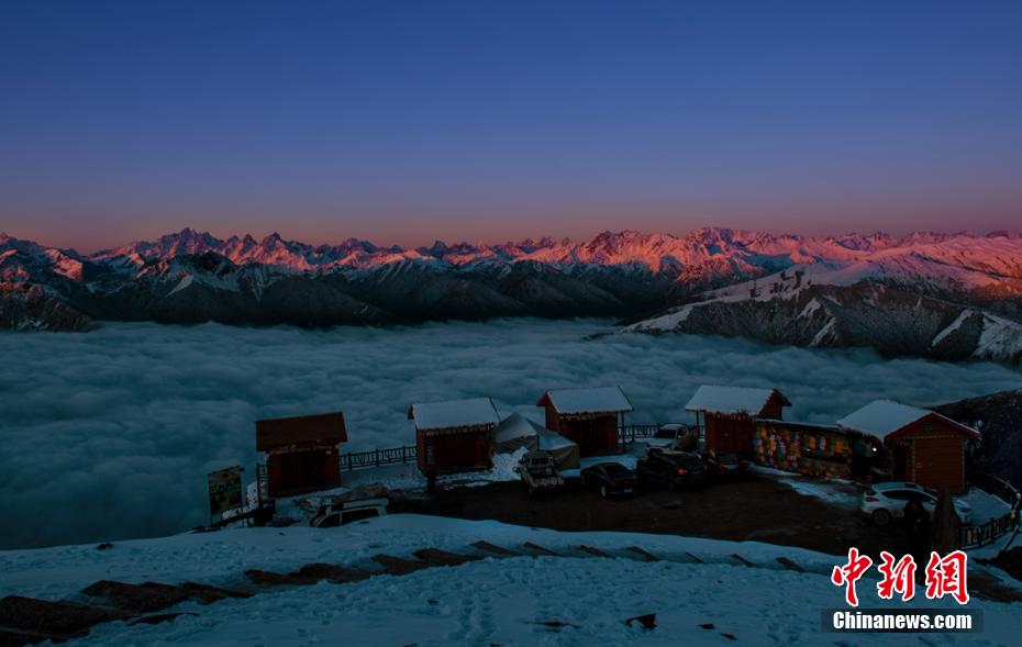 連日來,位于四川省雅安市寶興縣磽磧藏族鄉(xiāng)的達瓦更扎景區(qū)雪后放晴。期間,日出、藍天、云海、雪山、星空等美景如畫,夢幻飄渺,蔚為壯觀。圖為日照金山。高華康 攝