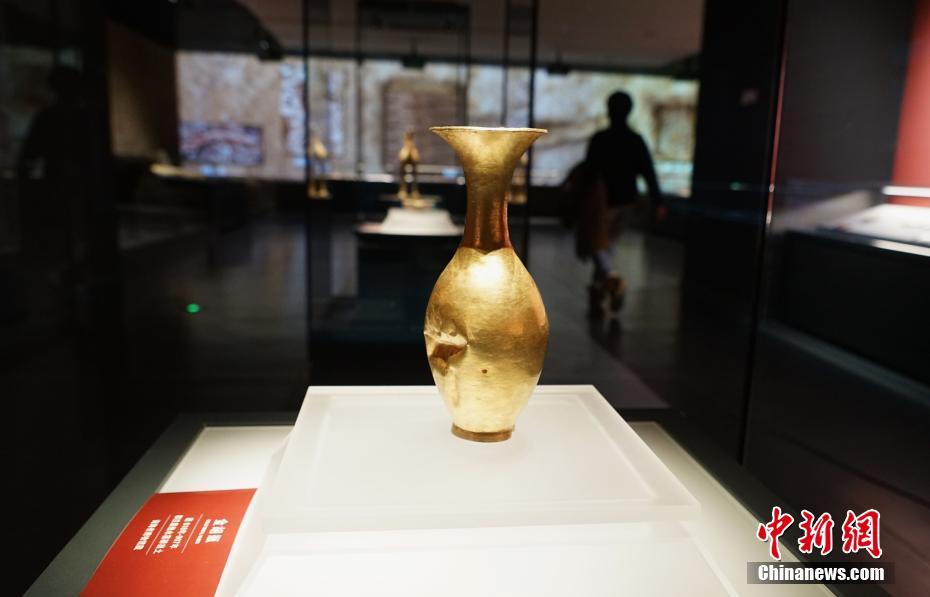 11月29日,位于青海省西寧市的青海省博物館展出從該省海西州都蘭縣熱水墓群出土的金胡瓶。當日,青海省博物館經(jīng)一年半升級改造后開館并舉辦“1+3”主題展覽,160件藏品首次亮相。該展覽以青海歷史文物為主,青海非物質(zhì)文化遺產(chǎn)、考古成果、百年革命文物為輔,多角度展現(xiàn)地域歷史及民族文化。據(jù)了解,升級后的博物館上展文物1331件(套)/2405件,其中一級文物191件,珍貴文物248件(套),上展文物體量為青藏高原最大。 中新社記者 馬銘言 攝