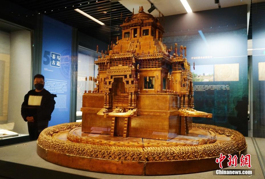 11月29日,位于青海省西寧市的青海省博物館展出木雕壇城。當日,青海省博物館經(jīng)一年半升級改造后開館并舉辦“1+3”主題展覽,160件藏品首次亮相。該展覽以青海歷史文物為主,青海非物質(zhì)文化遺產(chǎn)、考古成果、百年革命文物為輔,多角度展現(xiàn)地域歷史及民族文化。據(jù)了解,升級后的博物館上展文物1331件(套)/2405件,其中一級文物191件,珍貴文物248件(套),上展文物體量為青藏高原最大。 中新社記者 馬銘言 攝