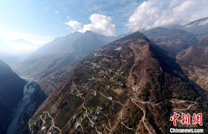 航拍雅礱江邊高山峽谷間的九龍魁多鎮(zhèn)?!⒅铱?攝
