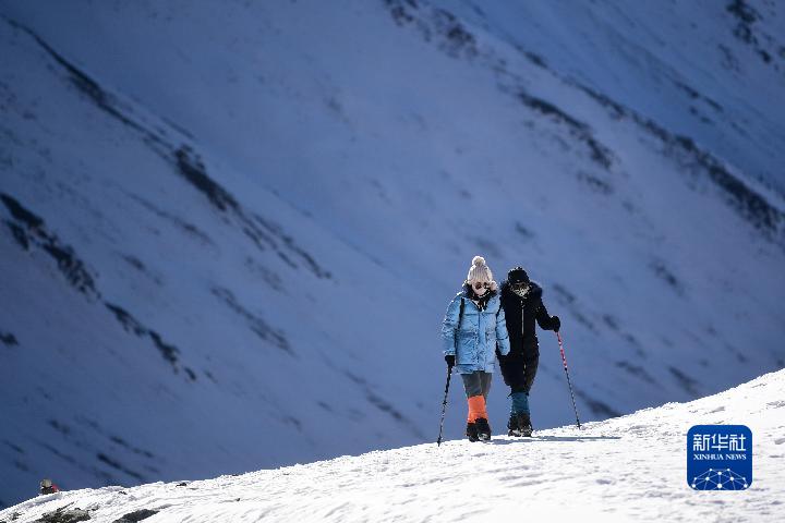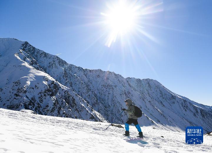 1月1日,登山愛好者攀登崗什卡雪峰。新華社記者 張龍 攝