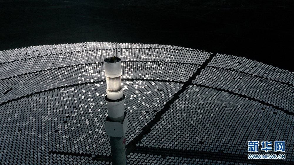 位于青海省海南藏族自治州共和縣光伏產(chǎn)業(yè)園內(nèi)一處塔式光熱發(fā)電項目(無人機(jī)照片)。新華社記者 張宏祥 攝
