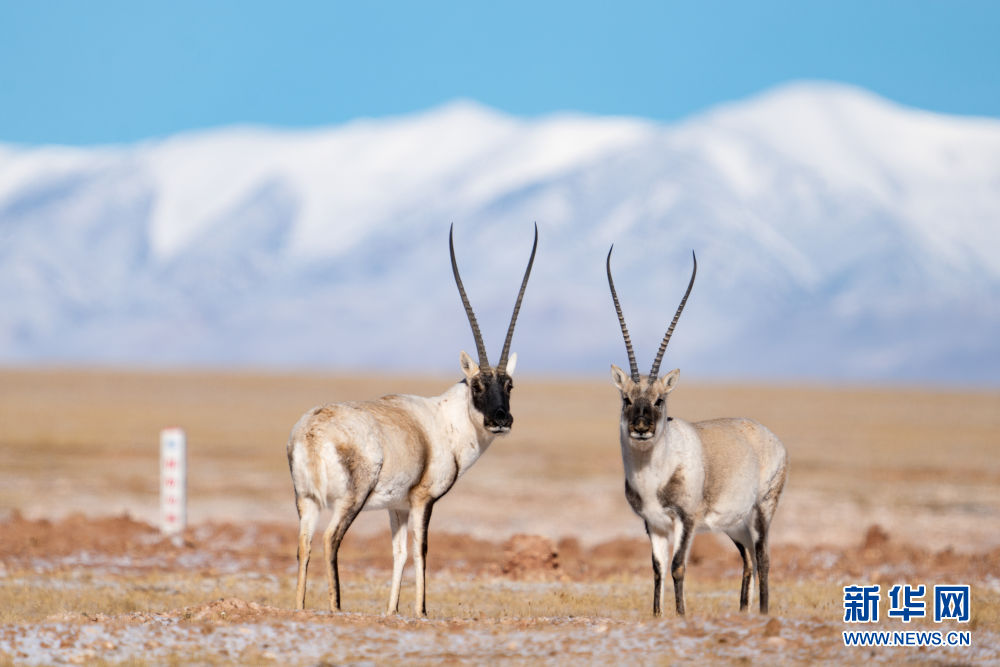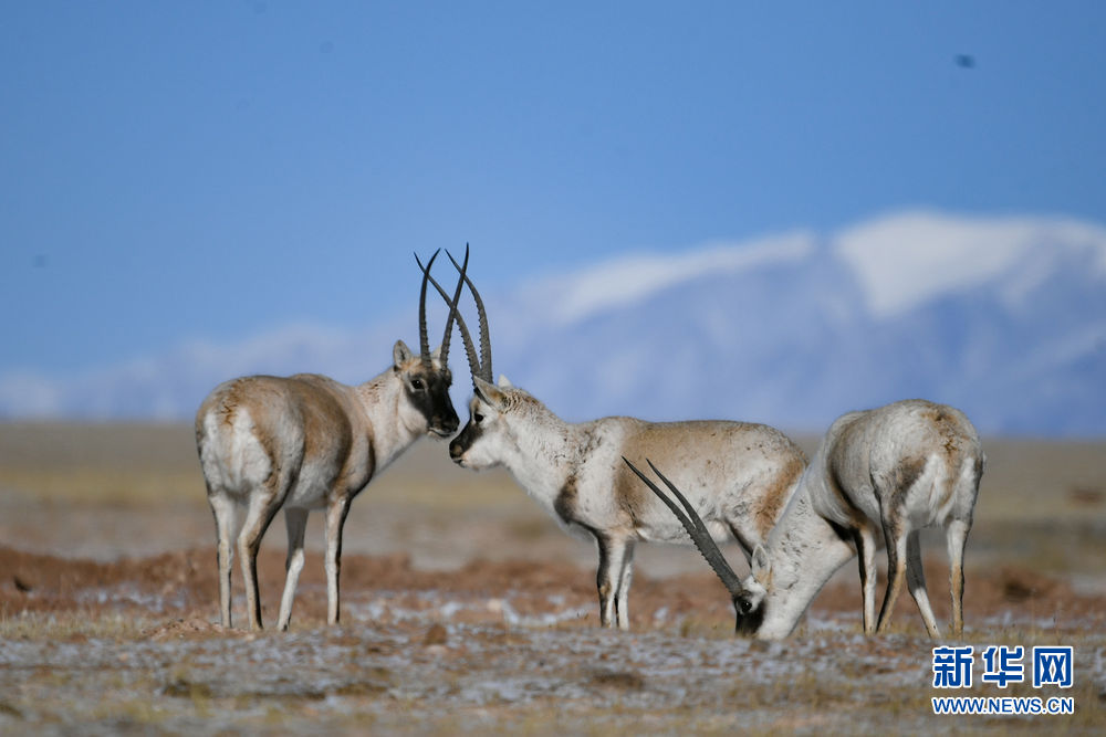 這是在可可西里拍攝的藏羚羊(1月20日攝)。新華社 潘彬彬 攝