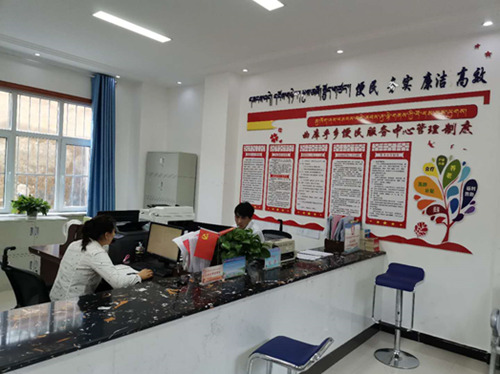 文亭巷社區(qū)服務(wù)大廳,民族事務(wù)服務(wù)窗口工作人員卓瑪永吉正在用藏語(yǔ)為前來(lái)辦理業(yè)務(wù)的玉樹小區(qū)居民解答需要填報(bào)表格的內(nèi)容,“每天都會(huì)有居民在這個(gè)窗口辦理業(yè)務(wù),一些通知也會(huì)用漢藏雙語(yǔ)的形式發(fā)布?!眲⒋淝嘟榻B,為了解決藏族群眾辦事存在溝通難的問(wèn)題,社區(qū)雙語(yǔ)工作人員進(jìn)行翻譯、解答,暢通了渠道,群眾辦事也更方便。