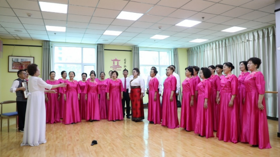 轄區(qū)居民組成的合唱隊(duì)正在排練。人民網(wǎng) 張皓芃攝