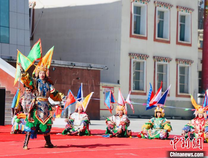為保護(hù)和傳承文化遺產(chǎn),弘揚(yáng)優(yōu)秀傳統(tǒng)文化,國(guó)家級(jí)非物質(zhì)文化遺產(chǎn)代表性項(xiàng)目青海馬背藏戲《丹瑪之子》14日在青海省果洛州格薩爾文化廣場(chǎng)展演。