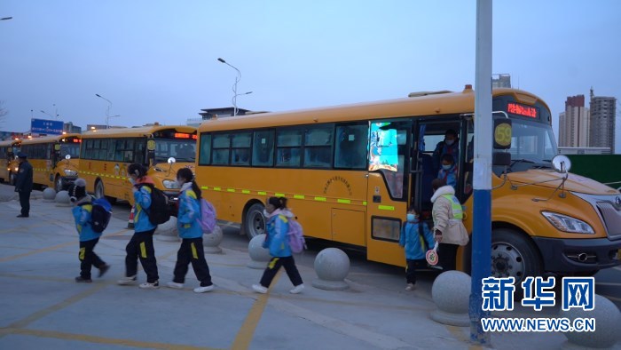 2月22日,新學期的第一天。清晨6點半,蘭州新區(qū)第二小學五年級4班的尚欣怡穿上藍色校服,早早來到蘭州新區(qū)搬遷安置點的巴士站點等校車?!耙粋€多月沒去新校園了,好想見到小伙伴們!”她說。