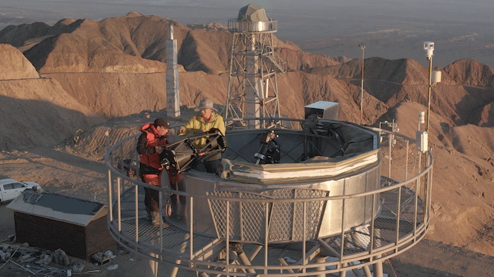 冷湖天文觀測基地選址團(tuán)隊人員調(diào)試觀測設(shè)備。(受訪者供圖)