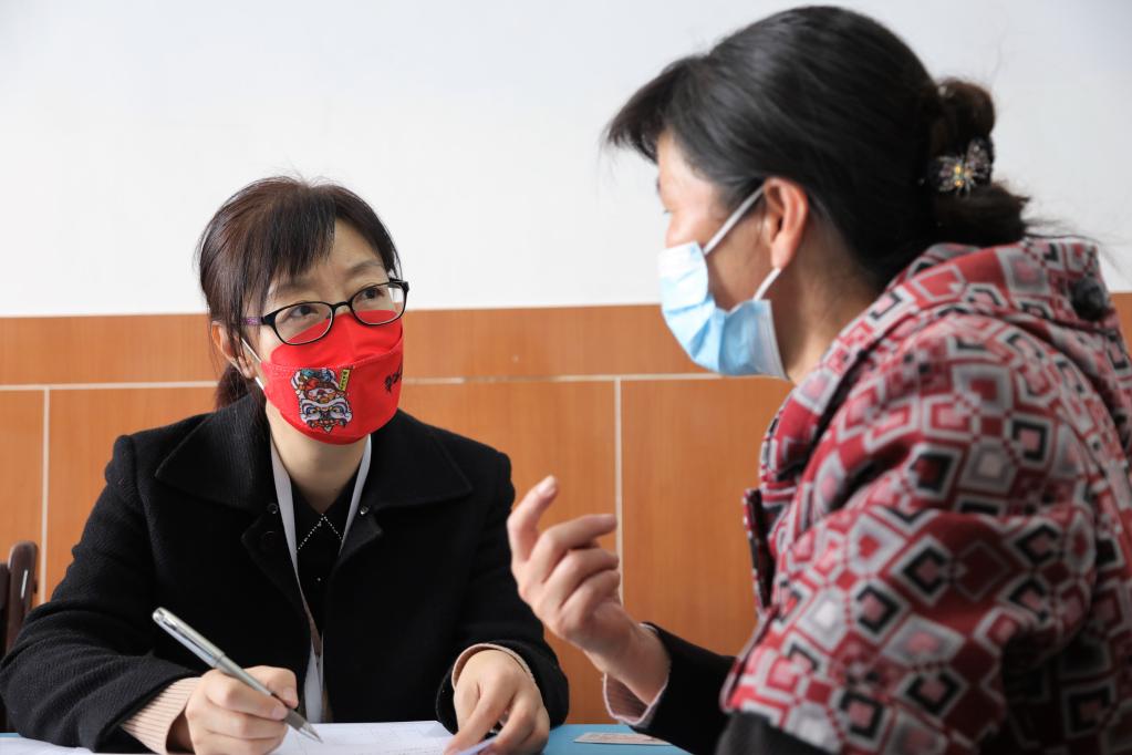 3月9日,在社區(qū)“石榴籽家園”,居民馬應洪(右一)在向工作人員咨詢醫(yī)保相關政策。新華社記者 趙玉和 攝