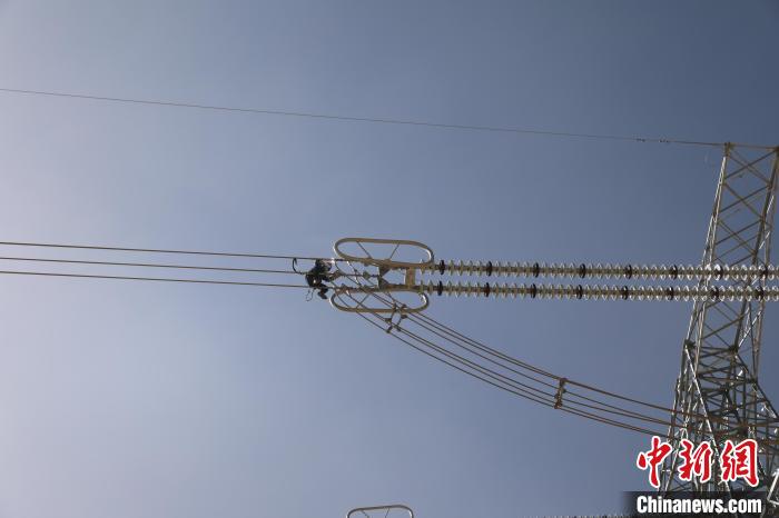圖為國(guó)網(wǎng)青海超高壓公司輸電專業(yè)人員正在開展750千伏青塔I線14號(hào)鐵塔消缺工作?!《瓚c芳 攝