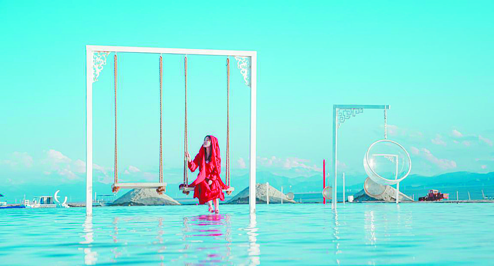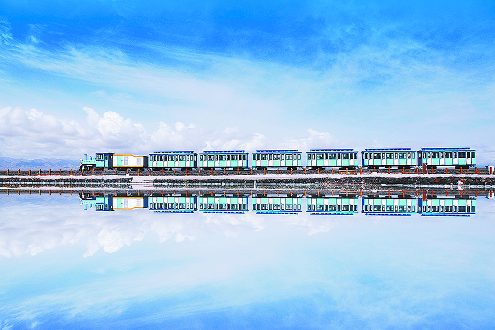 “走進(jìn)鹽湖,湖面猶如一面鏡子,從青海的天空中飄落,落在茶卡,湖如鏡,鏡是湖。藍(lán)天、白云、雪山、人影,純凈的交織如同一場(chǎng)夢(mèng)境?!边@段留在網(wǎng)絡(luò)上對(duì)茶卡鹽湖詩意的描述,觸動(dòng)了無數(shù)人的心弦。