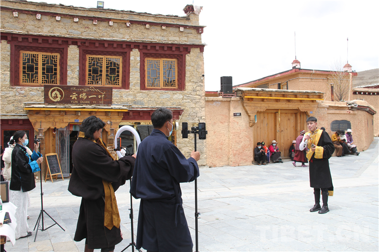 這群年輕人是來自理塘高原上電子商務(wù)有限公司和理塘天空之城傳媒有限公司的主播,他們已經(jīng)在這里連續(xù)直播了4天時間。團隊負(fù)責(zé)人洛布介紹說:“今年由于疫情原因,很多外地朋友無法來到理塘,我們希望通過現(xiàn)場全程直播的方式,把家鄉(xiāng)的風(fēng)景與文化傳遞給更多的人,讓更多人了解理塘、愛上理塘?!?天的時間,“理塘鄉(xiāng)村振興體驗館”和“高原上”兩個抖音賬號已經(jīng)累計獲得15萬人的觀看、124萬點贊量,通過直播間里主播們的介紹,有更多的朋友知道了理塘并希望盡快能安排到行程中。