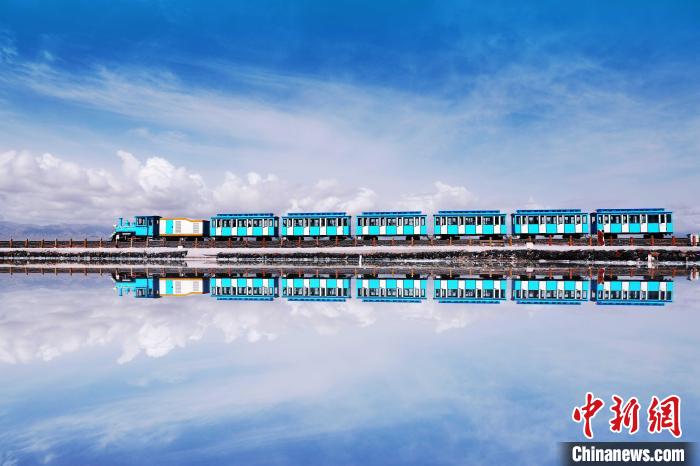 圖為茶卡鹽湖上行駛的小火車。(資料圖) 王生榮 攝