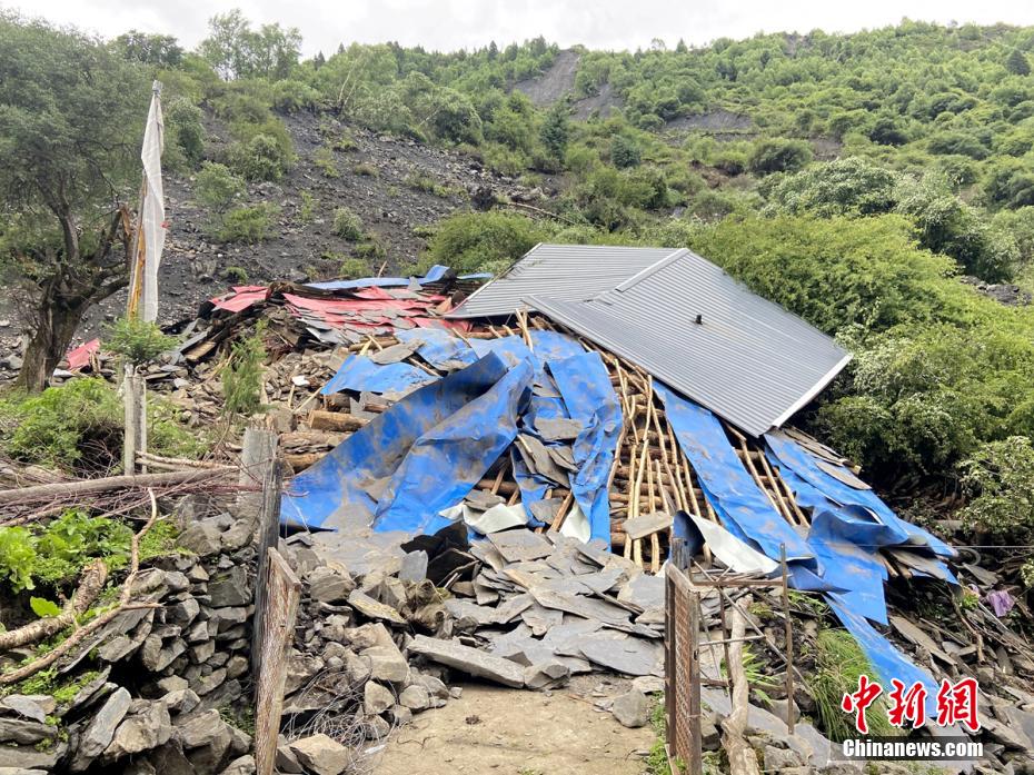 馬爾康市草登鄉(xiāng)科拉機(jī)村在地震中倒塌的房屋。 四川森林消防 供圖