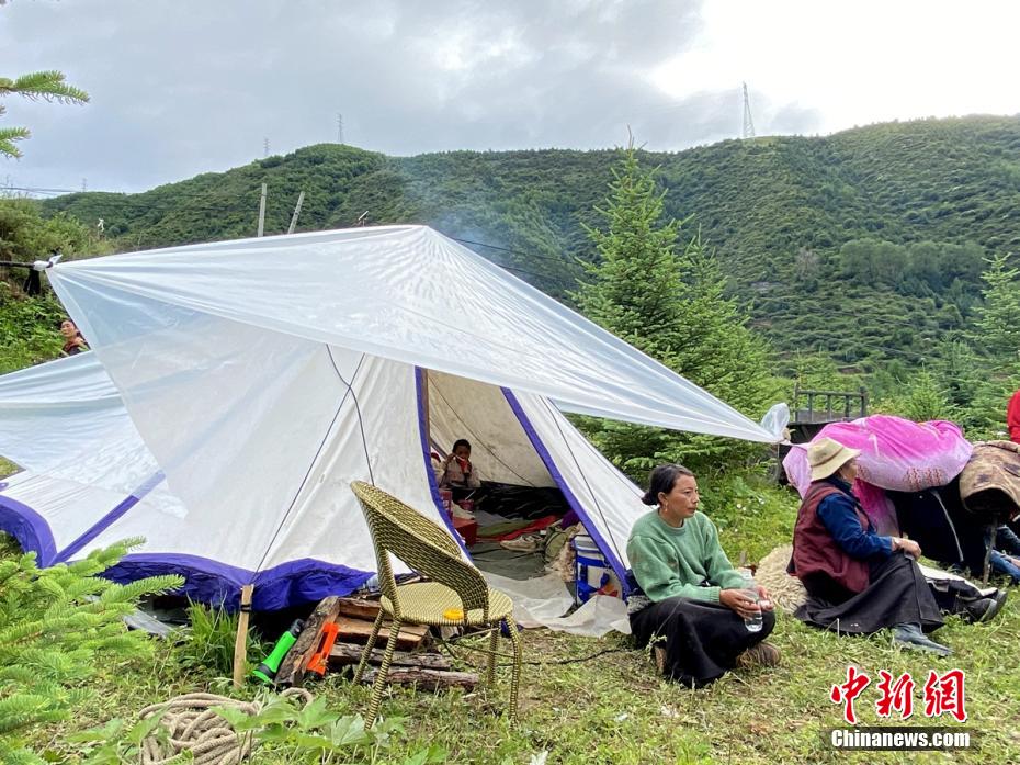 6月10日晚,93名阿壩森林消防支隊(duì)救援人員徒步抵達(dá)震中草登鄉(xiāng)后,迅速轉(zhuǎn)移群眾、搭建帳篷、發(fā)放應(yīng)急物資。據(jù)了解,此次地震造成草登鄉(xiāng)呷秋里村、科拉機(jī)村受災(zāi)較重,有部分房屋倒塌。目前,消防救援人員正全力搶修道路、排除路障,確保受困村民安全轉(zhuǎn)移。圖為馬爾康市草登鄉(xiāng)呷秋里村村民們在帳篷里休整。 四川森林消防 供圖
