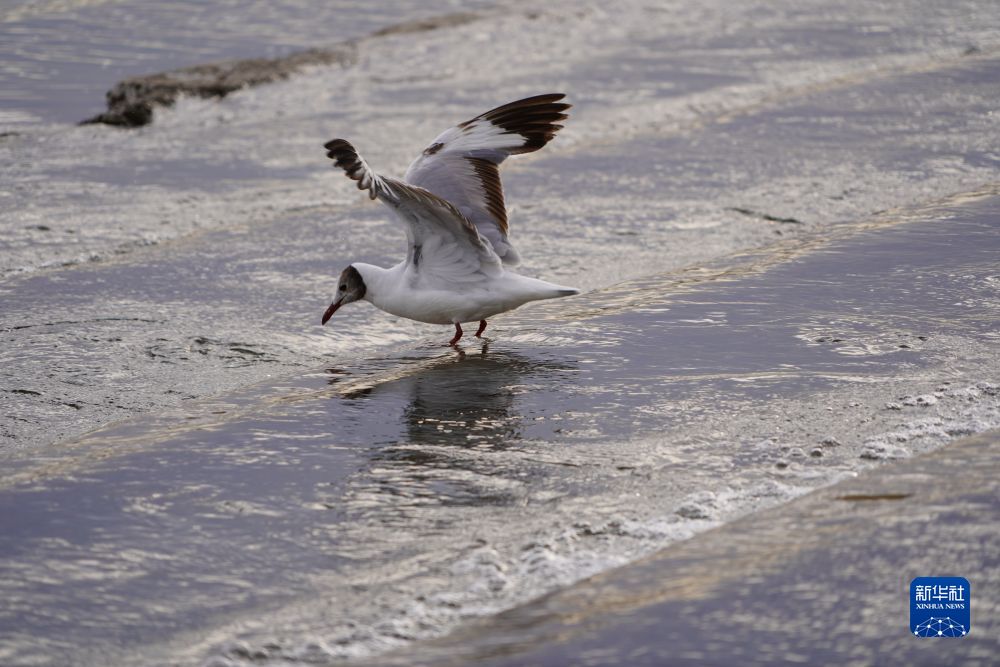 這是6月17日在沙柳河國家濕地公園拍攝的正在捕食青海湖裸鯉的水鳥。新華社記者 耿輝凰 攝