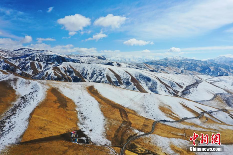 一場春雪過后,青海省海北藏族自治州祁連山國家公園青海片區(qū)群山被白雪覆蓋,云霧繚繞,金色的草場、潔白的羊群和蔚藍(lán)的天空相映成趣,美不勝收。[詳細(xì)] -