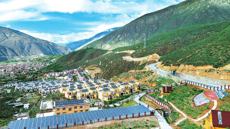 這里是巴塘縣實施地巫鎮(zhèn)易地扶貧搬遷集中安置項目時打造的新村。曾經(jīng),地巫鎮(zhèn)中真、甲雪、壩伙3個村位于離縣城149公里的大山深處,平均海拔3600米,地質(zhì)條件較為惡劣。如今,村里的群眾整體搬遷到“桃源地塢”新村,新房水、電、路等基礎(chǔ)設(shè)施一應(yīng)俱全。家家戶戶的屋頂上,還有雙流區(qū)捐建的分布式村級光伏扶貧電站,這讓村民們又多了一份收入。