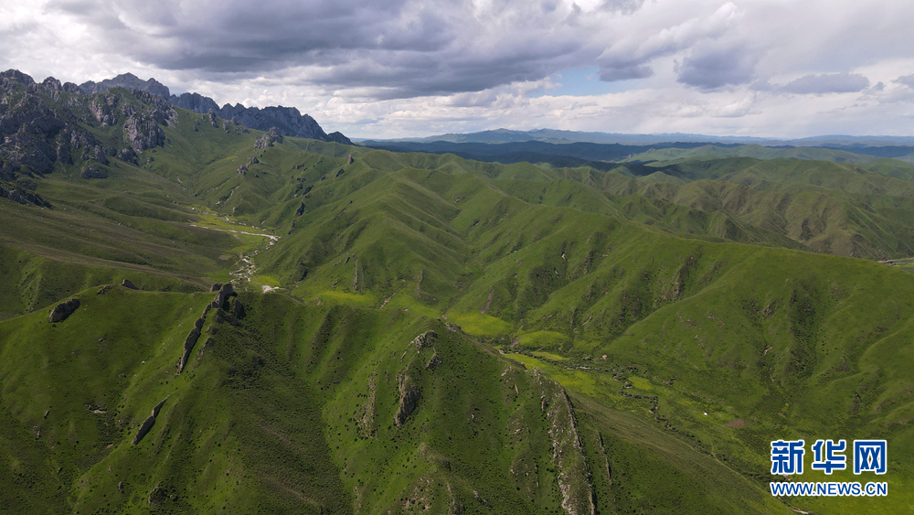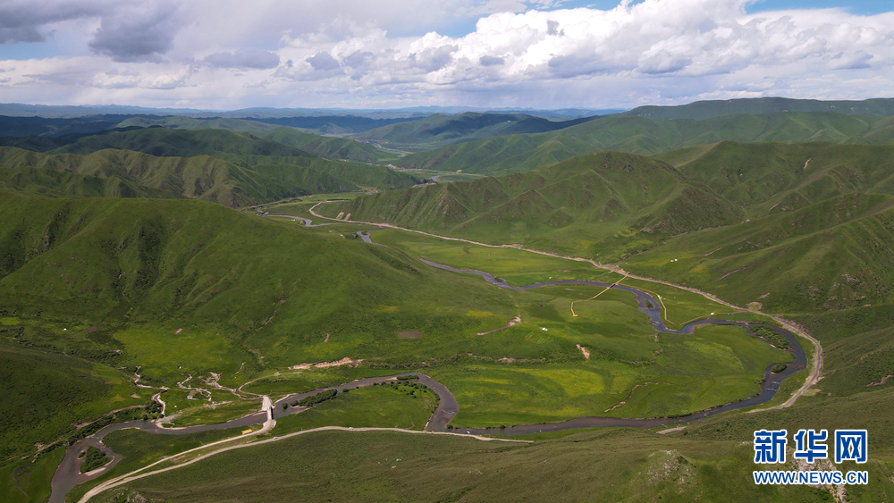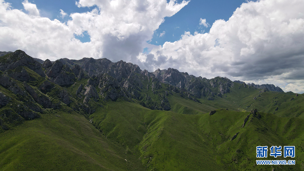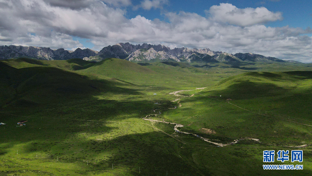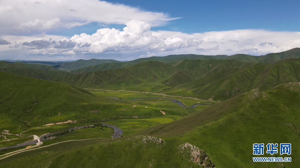 時值盛夏,青海省黃南藏族自治州河南蒙古族自治縣境內的青海洮河源濕地公園,奇峰聳立、水草豐美。藍天白云之下,高山與草原相映,風光旖旎、如詩如畫。