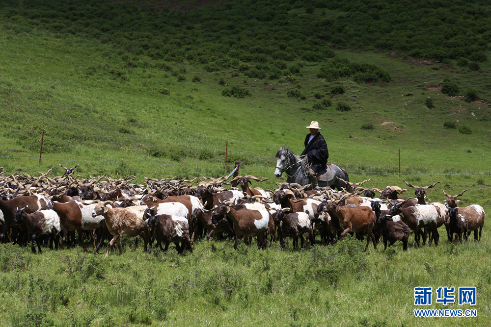 牧民在青海洮河源國家濕地公園內放牧。新華網 卡婭梅朵 攝