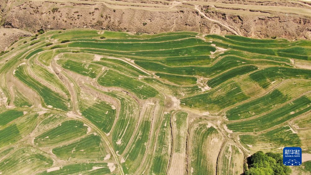 2022年6月16日,黃南藏族自治州同仁市黃乃亥鄉(xiāng)日秀瑪村內(nèi),黑青稞長(zhǎng)勢(shì)喜人(無人機(jī)照片)。新華社記者 王艷 攝