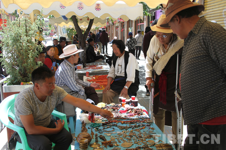 中國西藏網訊 2022年7月9日,在四川省甘孜藏族自治州理塘縣農貿市場的街邊地攤上,各種琳瑯滿目的藏家生產生活用品吸引了過往群眾購買。理塘縣免費提供的百余攤位,帶火了地攤經濟。圖為理塘縣農貿市場的街邊地攤(中國西藏網 通訊員/葉強平)