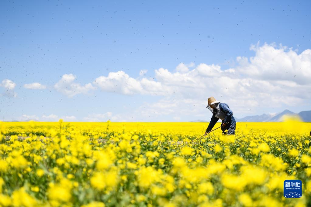 進(jìn)入七月,位于青海省海北藏族自治州門源回族自治縣的萬畝油菜花競相綻放。來自四川德陽的蜂農(nóng)馮躍宣在花海里忙碌。他從早上7點開始整理蜂箱、采集花粉、晾曬花粉,一直忙碌到晚上8點。[詳細(xì)] -
