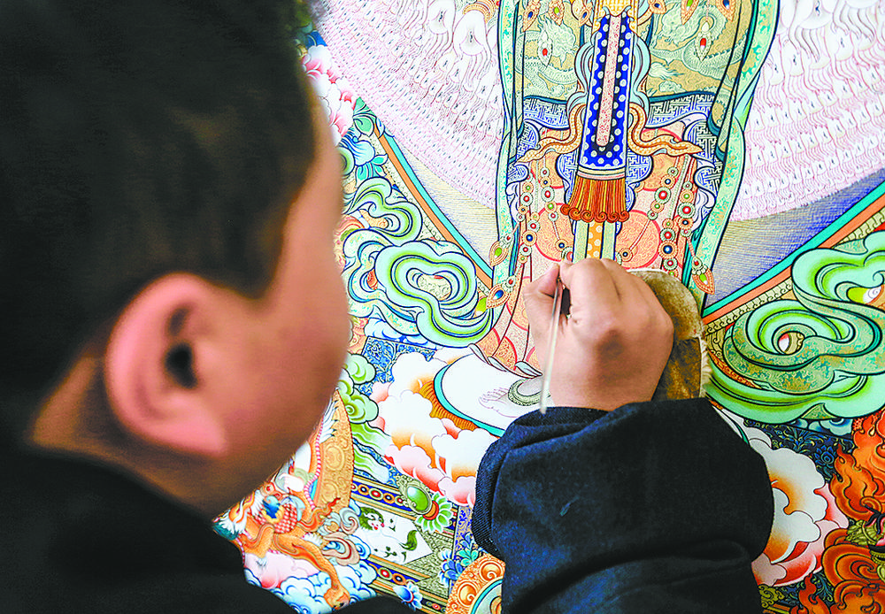 “‘00后’傳承人的加入讓我們看到唐卡這一古老的藝術(shù)品煥發(fā)出新生機(jī),孩子們對學(xué)習(xí)唐卡的熱情也讓我看到了希望?!蹦锉靖锌?,熱貢藝術(shù)作為民族文化珍品,從雪域高原逐漸走向了世界。