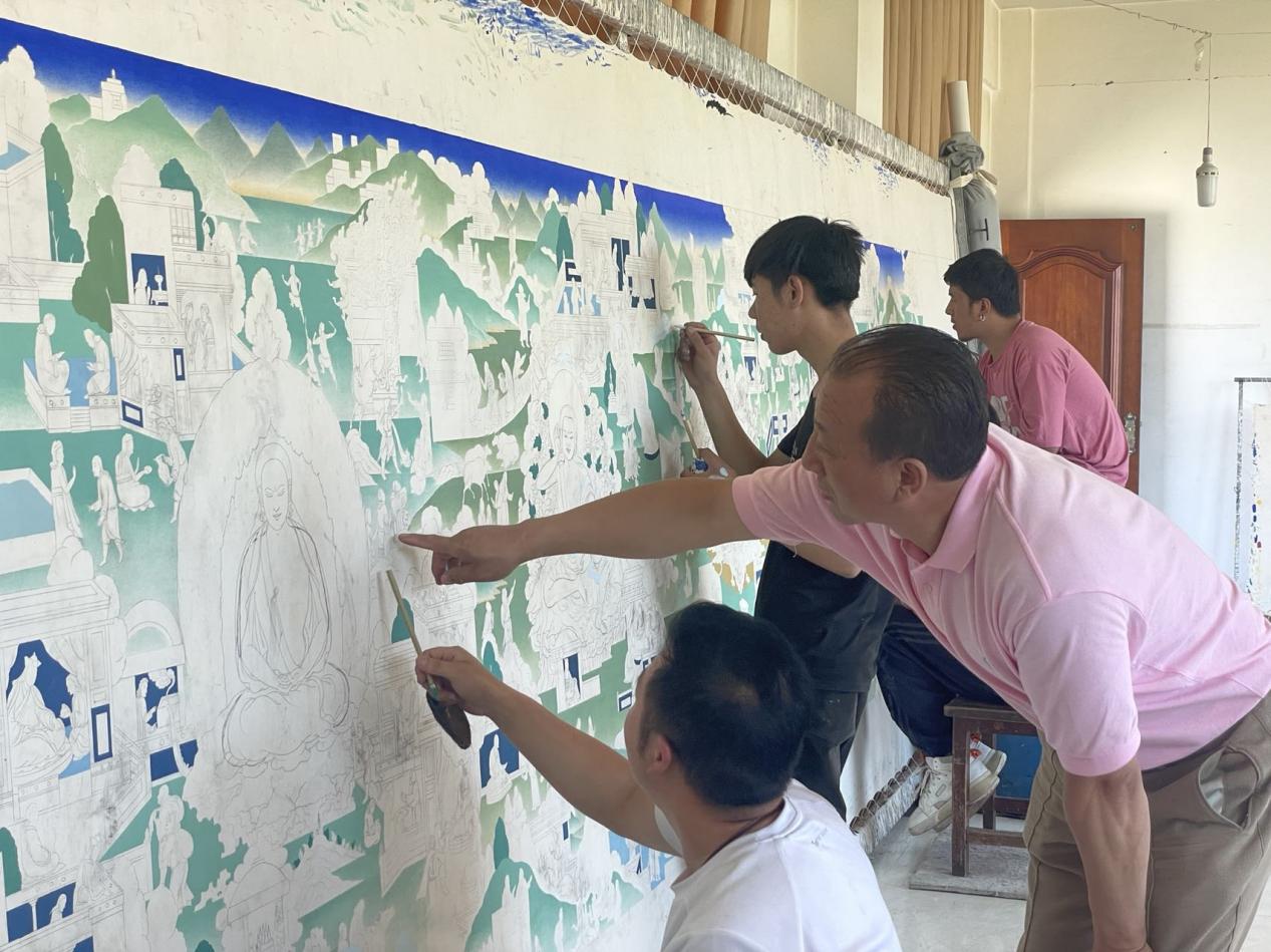 作為熱貢藝術(shù)(建筑彩繪)省級傳承人的更登,2007年3月成立黃南州更登熱貢藝術(shù)有限公司,先后培養(yǎng)了100多名優(yōu)秀的唐卡藝人,自公司成立以來累計培養(yǎng)學(xué)員410人,其中300余人現(xiàn)已成為熱貢藝人群體中的精英人才,公司助力200多戶脫貧戶增收致富。