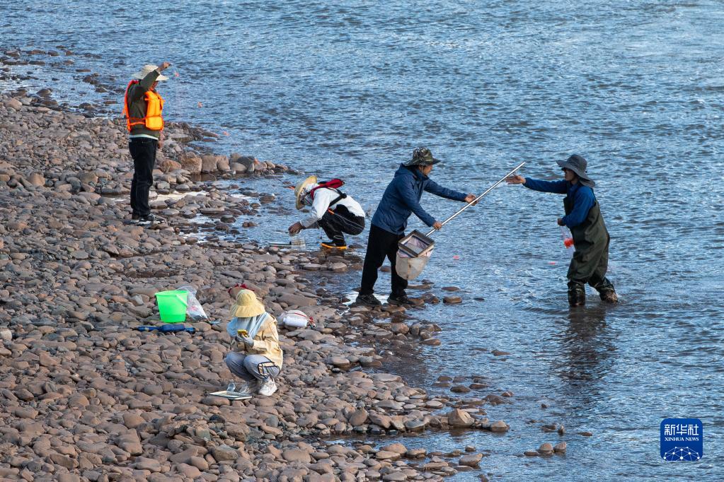 7月24日,長江科學(xué)院科考隊(duì)員劉晗在瀾滄江源區(qū)的扎曲采集魚類樣本。新華社記者 肖藝九 攝