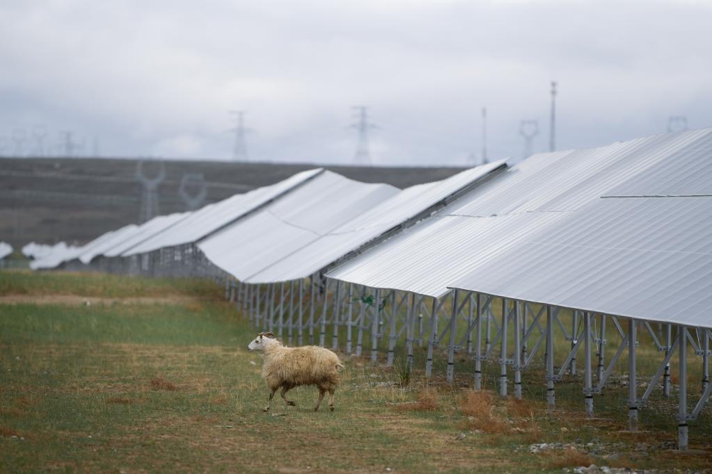 為了讓羊群能夠暢通無阻地吃草,園區(qū)工作人員通過研究將光伏組件的離地間隙從原來的50厘米抬升至120厘米,打通了羊群的“綠色通道”,實現(xiàn)了“板上發(fā)電、板下牧羊”。
