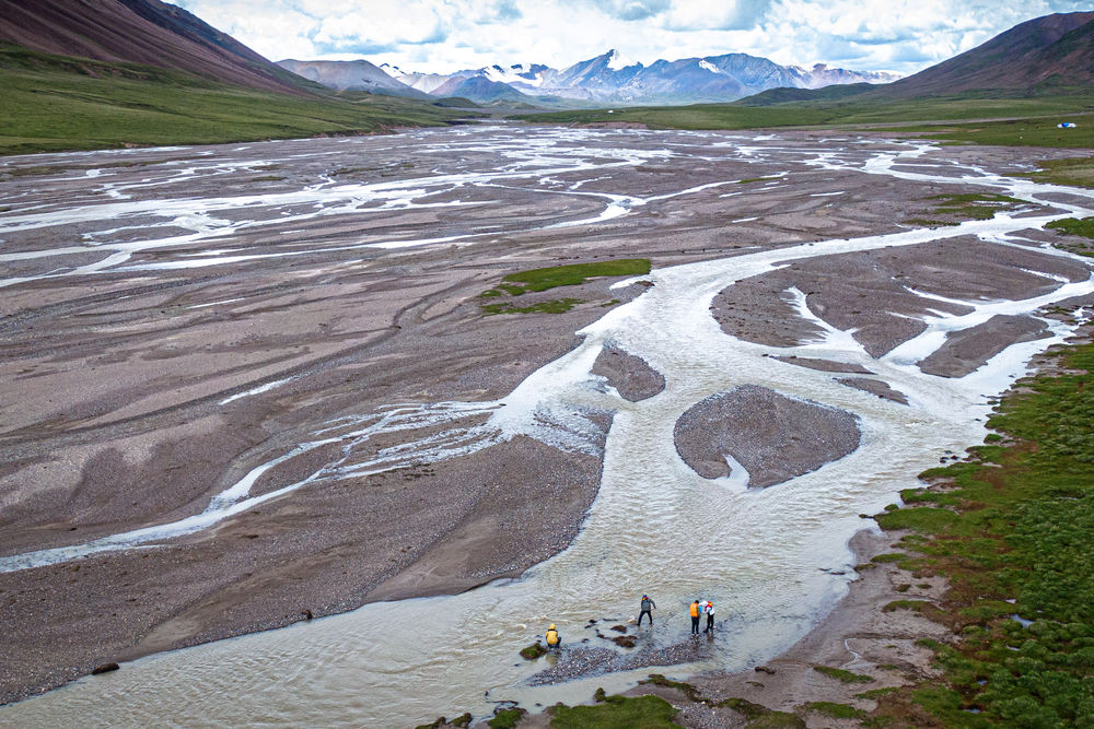 7月26日,來(lái)自長(zhǎng)江科學(xué)院的科考隊(duì)員在長(zhǎng)江源區(qū)采集水樣。新華社 肖藝九 攝