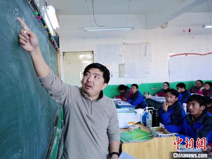 圖為丁志偉正在給學生講課。上海市援青干部聯(lián)絡組供圖