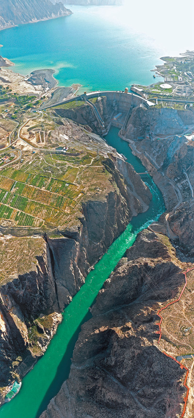一根根高壓線路,將光電從光伏園區(qū)輸出,直連50多公里外的龍羊峽水電站,組成了青海裝機(jī)容量最大的水光互補(bǔ)電站。