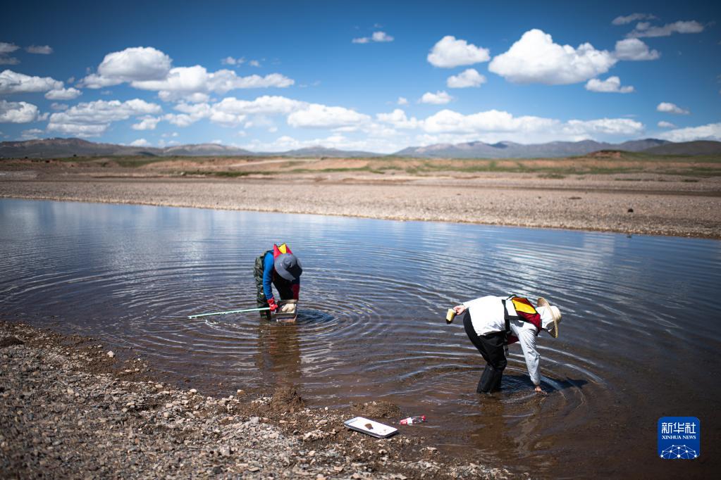 7月24日,長江科學(xué)院科考隊(duì)員李魯?shù)ぴ诓杉讞珓游飿颖尽?新華社記者 肖藝九 攝