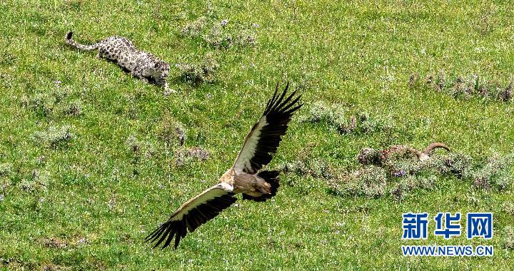 自然觀察愛(ài)好者在2022年昂賽自然觀察節(jié)上拍攝到的雪豹和高山兀鷲。新華網(wǎng)發(fā) (李梓豪 攝)
