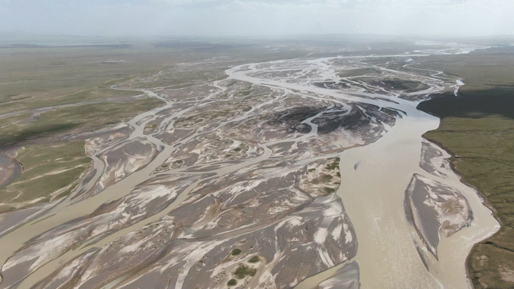 周銀軍說,在青藏高原上,江源河床下多是凍土,河水很難向下侵蝕。加上兩岸沒有山體形成自然約束,也不像平原地區(qū)修建堤防、護(hù)岸等水利工程,長江源地區(qū)河流水量大、水流快時,河道沖刷以橫向變形為主,因此河床呈現(xiàn)千變?nèi)f化狀態(tài)。