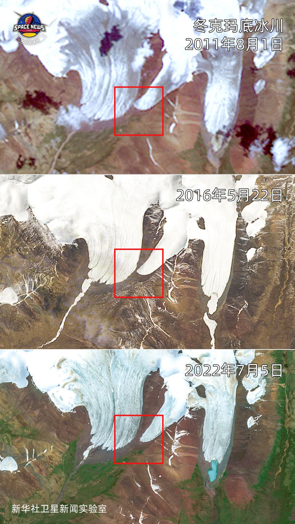 中國氣象局氣候變化中心發(fā)布的《中國氣候變化藍(lán)皮書(2021)》顯示,全球山地冰川整體處于消融退縮狀態(tài),1985年以來山地冰川消融加速。其中長江源區(qū)大、小冬克瑪?shù)妆ň始铀傧谮厔荩?020年這兩條冰川末端分別退縮了10.1米和15.7米。