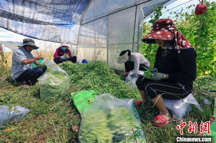 八月中旬,在四川省阿壩藏族羌族自治州壤塘縣的熱布卡蔬菜基地,五月種植的第一批四季豆(學(xué)名菜豆,下同)正值豐收。50歲的陳老會(huì)年初從云南來(lái)到四川壤塘工作,她和工友們將剛采摘的四季豆篩選裝袋,近五十斤重的包裝袋整齊鋪滿地面?!拔覀兿挛绮烧氖卟耍诙煸缟暇湍艹霈F(xiàn)在成都的市場(chǎng)上?!彼^也不抬地忙著手中的活。