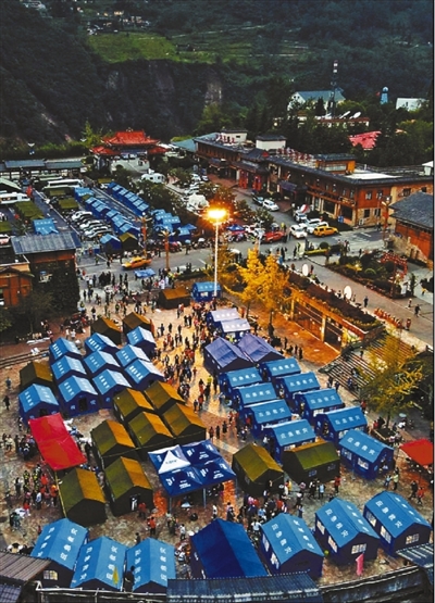 9月5日18時(shí)20分,天色漸暗,甘孜藏族自治州瀘定縣磨西鎮(zhèn)臨時(shí)安置點(diǎn)亮起了震后的第一盞燈。王明峰 湯衛(wèi) 攝影報(bào)道