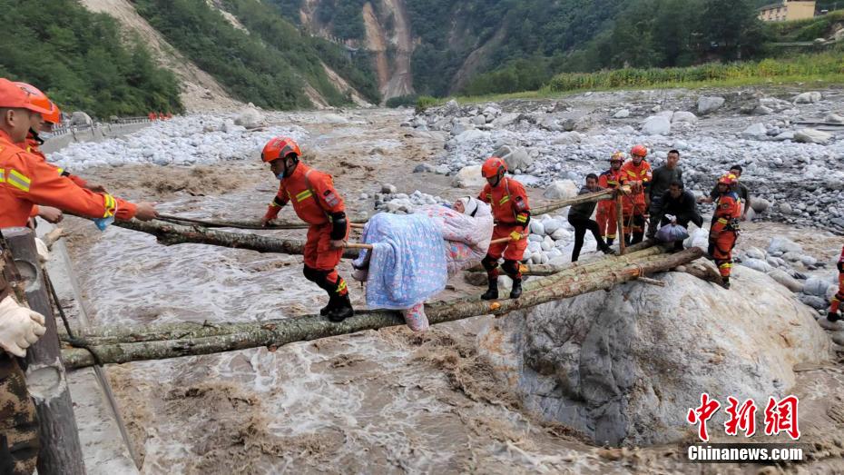 圖為森林消防員正在轉(zhuǎn)移受傷群眾和村民。 四川森林消防供圖 攝