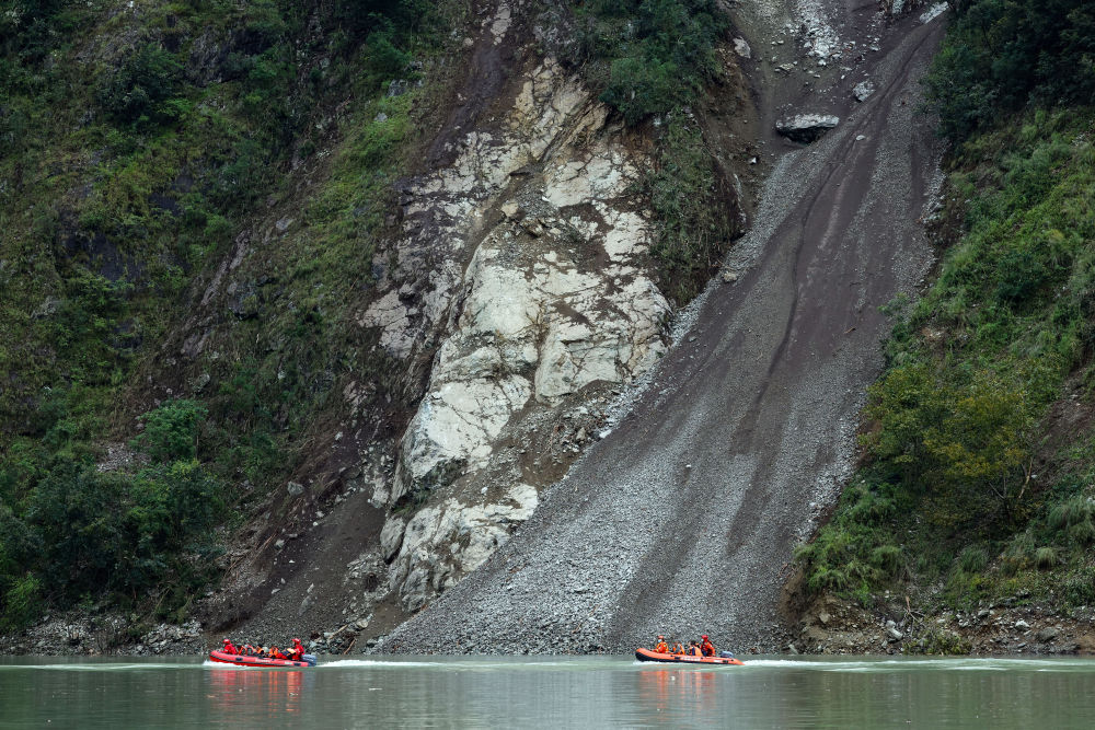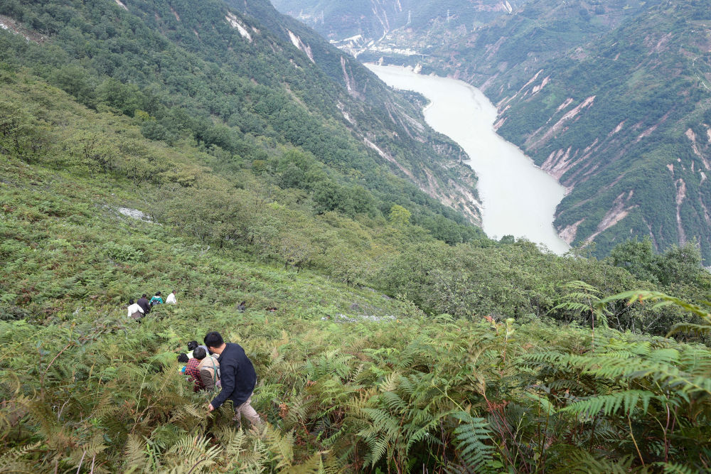 時(shí)間已經(jīng)到了下午3點(diǎn)半,我決定跟著十余個(gè)村民走下山,盡快下山整理照片發(fā)稿。下山路比上山路略好走一些,有時(shí)沿著尚未中斷的山間盤(pán)山公路行走,有時(shí)會(huì)經(jīng)過(guò)之前村民踩出的小路,有時(shí)只能自己開(kāi)路向前。兩個(gè)來(lái)小時(shí)之后,坐在返回得妥鎮(zhèn)的橡皮艇上,我懸著的心才終于落下。