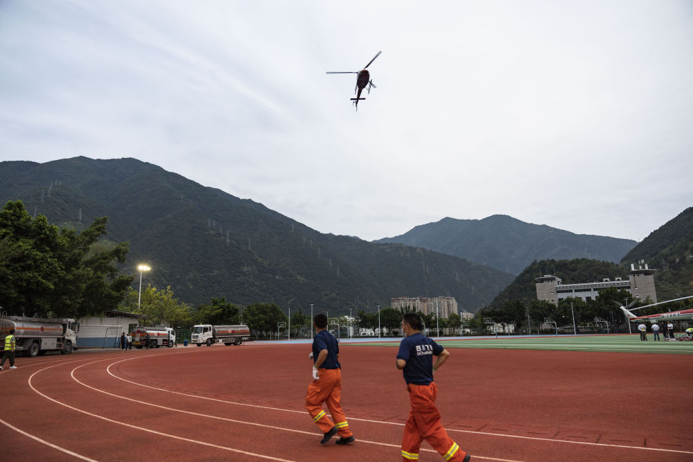 到達(dá)石棉縣后,我了解到有幾個(gè)偏遠(yuǎn)鄉(xiāng)鎮(zhèn)受災(zāi)較重,但是現(xiàn)在道路不通。我四處打聽(tīng)可以進(jìn)震中采訪(fǎng)的辦法,終于在縣委指揮部找到一名應(yīng)急管理部南方航空護(hù)林總站司機(jī),他們有直升機(jī)前往現(xiàn)場(chǎng)救援,我馬上前去聯(lián)系,終于在第二天,飛到大山中的“孤島”幸福村。