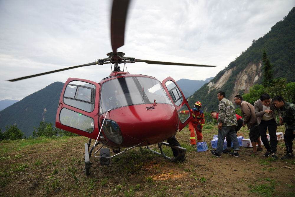 7日一早,我和同事從水路轉(zhuǎn)空路,搭乘滿(mǎn)載食品和帳篷等救援物資的直升機(jī)挺進(jìn)草科鄉(xiāng),彼時(shí)各類(lèi)救援物資和通訊設(shè)備正陸續(xù)開(kāi)始送往草科鄉(xiāng)及深山里的幾個(gè)村子。