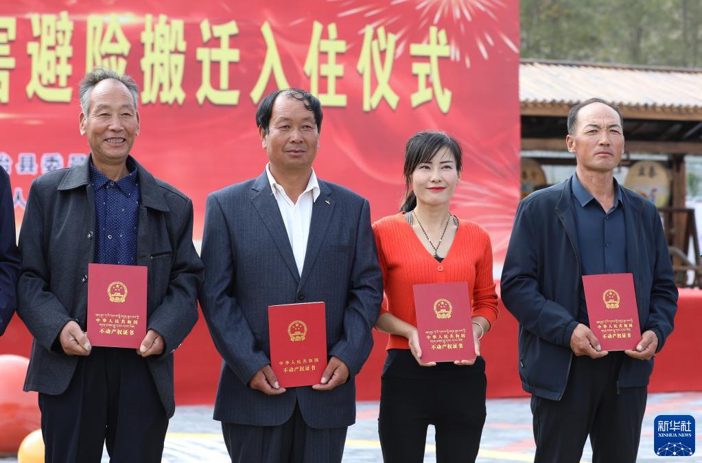 9月15日,在甘肅省武威市天祝藏族自治縣生態(tài)及地質(zhì)災害避險搬遷入住儀式上,祁連鎮(zhèn)116戶群眾拿到不動產(chǎn)權(quán)證書,入住新房。作為生態(tài)脆弱地區(qū),天??h通過生態(tài)及地質(zhì)災害避險搬遷工作,嘗試解決地質(zhì)災害威脅和發(fā)展受限問題。