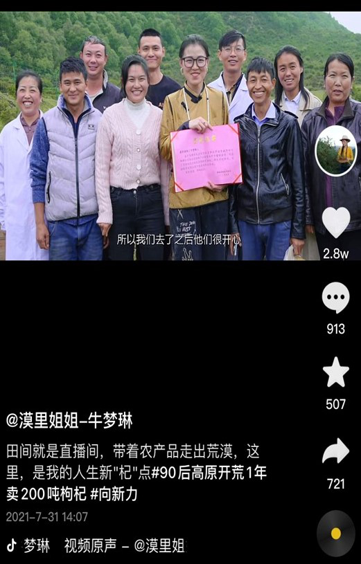 越來越多的粉絲留言問牛夢琳,如何購買她家種植的枸杞,在經(jīng)歷了幾個月的準備工作后,2020年初,牛夢琳第一次直播銷售枸杞。