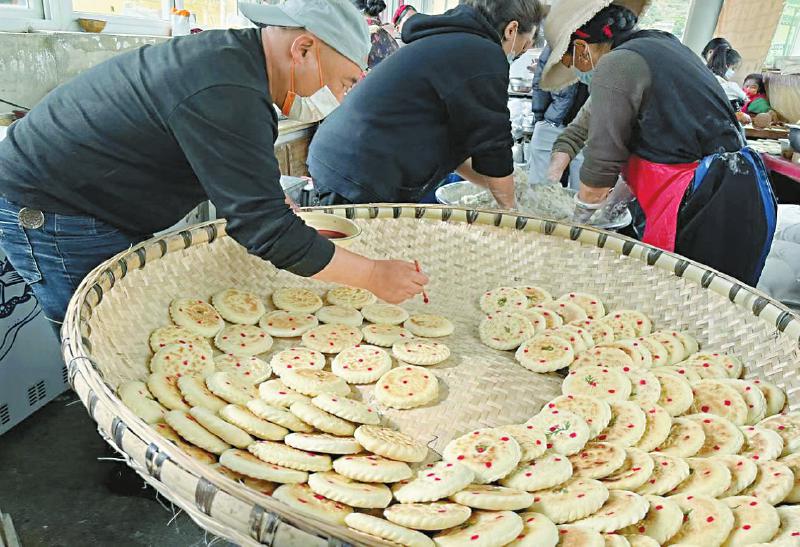 中秋節(jié)前,甘孜州道孚縣群眾及愛心企業(yè),自發(fā)組織制作當(dāng)?shù)靥赜胁厥皆嘛灮x饃送到瀘定受災(zāi)群眾手中。