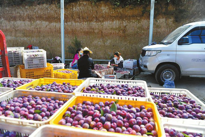 從早上6點一直忙到下午4點,5000斤紅脆李全部采摘裝車。黃幺全開著車趕往6公里外的鑫海種植專業(yè)合作社,那里也可以幫果農(nóng)收運紅脆李。